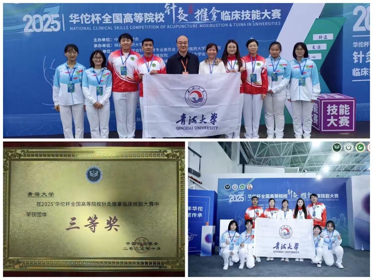 10月18至19日,由中国针灸学会主办,陕西中医药大学承办的2025年“华佗杯”全国高等院校针灸推拿临床技能大赛在陕西咸阳举行,由我校中医系李永平、洒玉萍教授带队,武娟、王玲玲、莫启功、阳运秋4位教师和秦毛兰姐、余心境、李欣璐、扎西卓玛4 位学生组成的代表队,分别参加教师组、学生组比赛,最终荣获团体三等奖。