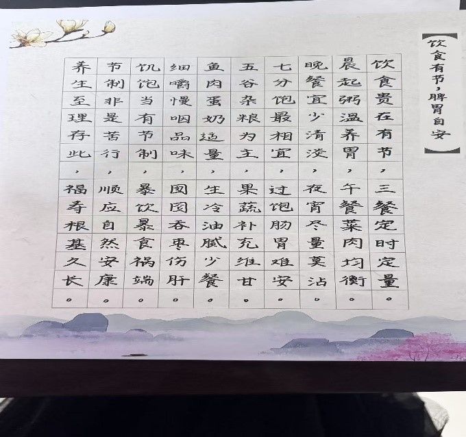 同学们通过学院官网、微信公众号及各班级群发布征集公告,明确作品需围绕健康知识普及、医学人文精神等主题,涵盖硬笔、软笔两种形式,期间共收到60份有效作品。线下评选与成果展阶段,学生会邀请学院团委老师,从主题契合度、书法技法、创意表达三个维度对作品打分,最终选出优秀作品。在学院大厅设置线下成果展,通过展板陈列、作品旁附健康知识注解的形式,让观展同学在欣赏书法艺术的同时,学习医学常识。收尾阶段,学生会组织将优秀作品进行装裱留念。