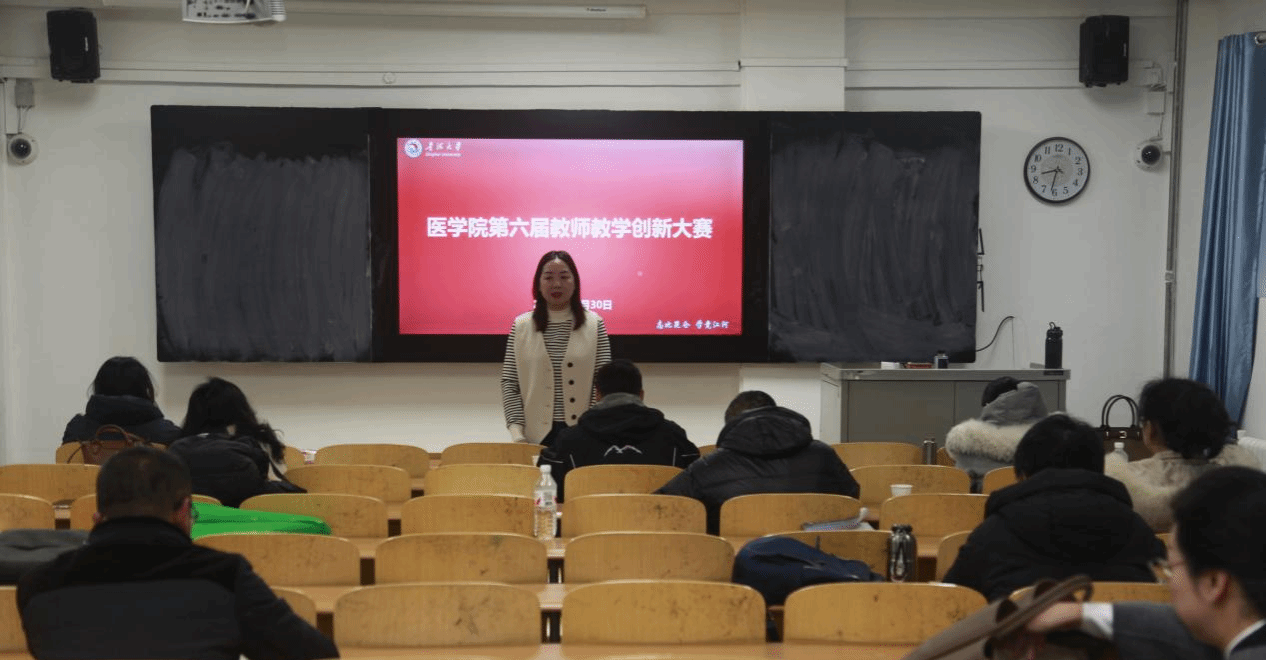 为促进医学教育教学改革,提升教师教学能力,医学院于2025年12月30日在昆仑路校区组织举办了第六届教师教学创新大赛。比赛由教学管理部主任沈国平主持,邀请5位资深专家担任评委,并组织30余名近五年新入职青年教师现场观摩学习。